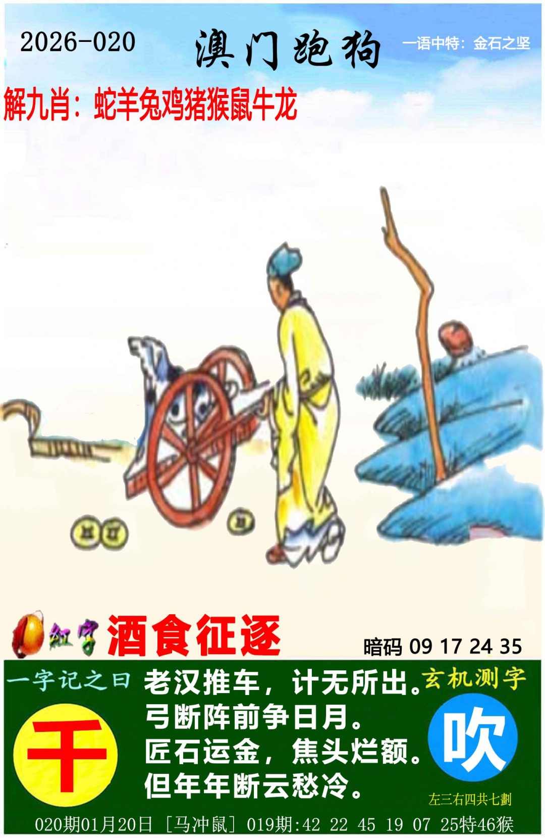 020期-跑狗一字记曰【千】 老汉推车,计无所出。弓断阵前争日月。 匠石运金,焦头烂额。但年年断云愁冷。 解生肖:羊虎猴龙鼠马 解三肖:羊虎猴 |